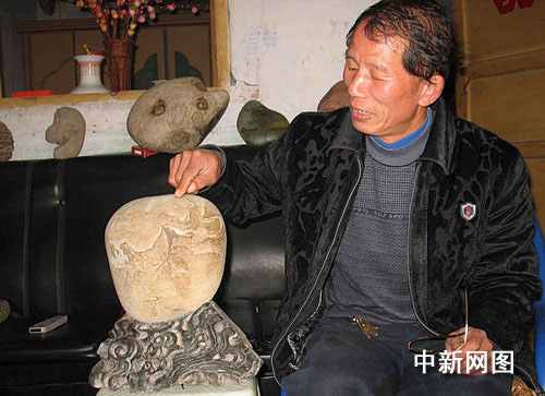 四川艺人在金沙江捡到“江山多娇”奇石