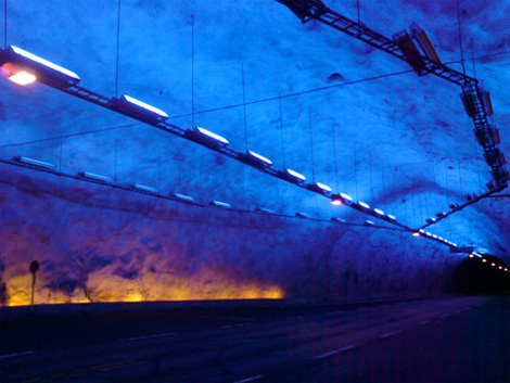 拉达尔隧道 所在地:挪威松恩-菲尤拉讷 背景:拉达尔隧道全长15英里(约合24.1公里),是世界上最长的公路隧道。它所穿越的地区正是挪威高山纵横和海湾遍布的地形复杂地区。在拉达尔隧道建设过程中,总共实施了大约5000次不同的爆炸。 独特之处:驾车穿越一个如此长的隧道大约需要二三十分钟。在无窗的隧道里驾驶如此长时间,人们肯定会感到无聊和枯燥乏味,甚至会有一种疲倦的感觉,这是相当危险的。为了让驾驶者不至于枯燥乏味,一支由心理学家、建筑设计师和工程师组成的设计团队将这一重要因素考虑进设计方案之中。美国伊利诺斯大学城市与环境工程学教授约瑟夫-哈沙什解释说,“人们在隧道中的心理反应是非常重要的。对于这么长的隧道,设计者必须要认真考虑环境和灯光系统的设计。” 在拉达尔隧道中,包括了许多独特的设计,如明亮的蓝色灯光和细微的弯曲变化,这些都可以让驾驶者不至于因为枯燥乏味而疲倦。最重要的是,这条隧道被分成了数个不同的部分,每个部分都有不同的外观设计,这样可以使驾驶者感觉是在一系列的较短隧道中穿行。 |