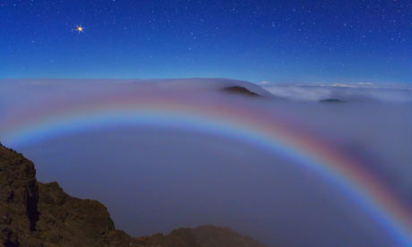 摄影师在夏威夷火山口拍到"月亮彩虹"